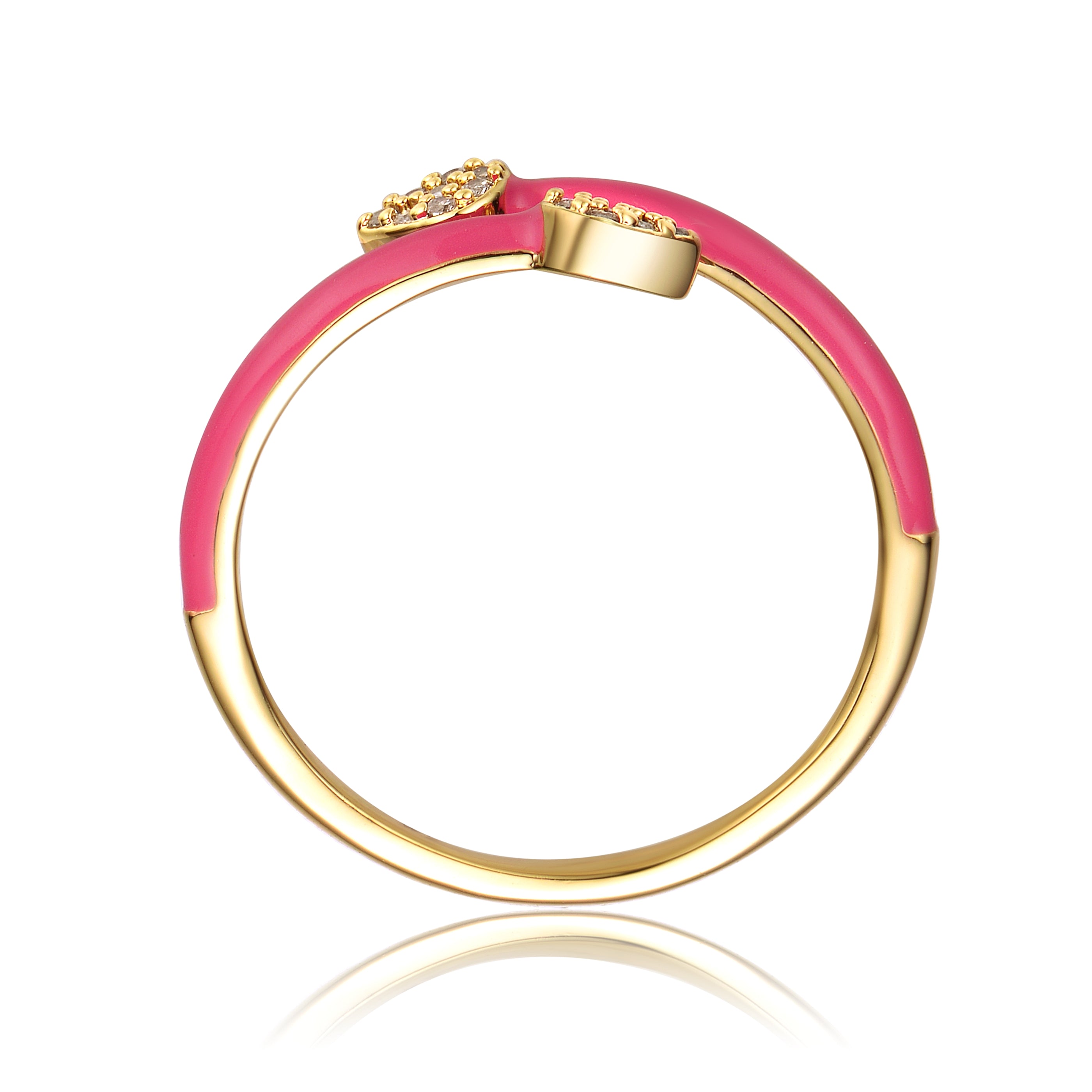 Kids/Teens 14k Yellow Gold Plated with Cubic Zirconia Bypass Magenta Pink Enamel Stacking Ring