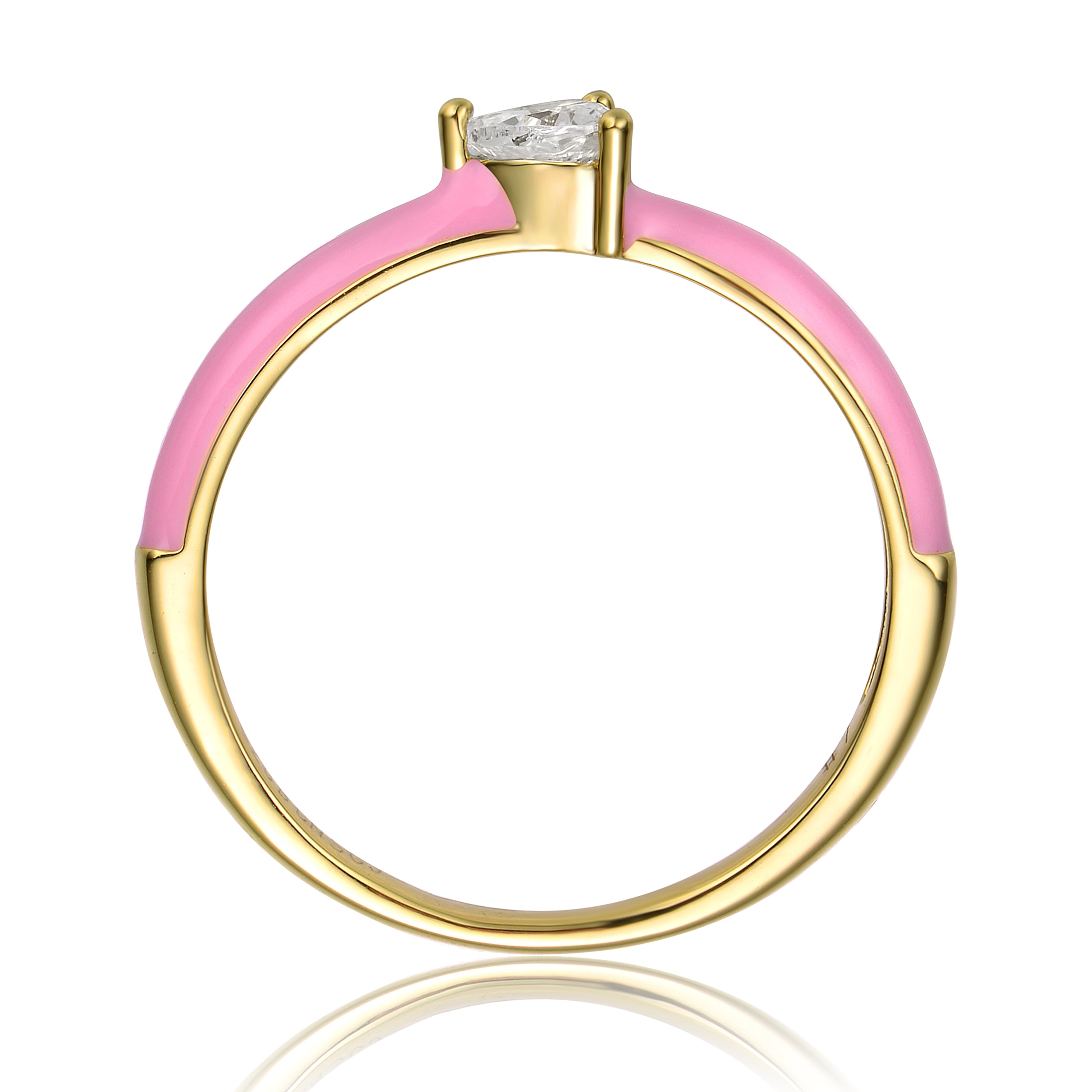 Kids/Teens 14k Yellow Gold Plated with Cubic Zirconia Heart Solitaire Pink Enamel Ring