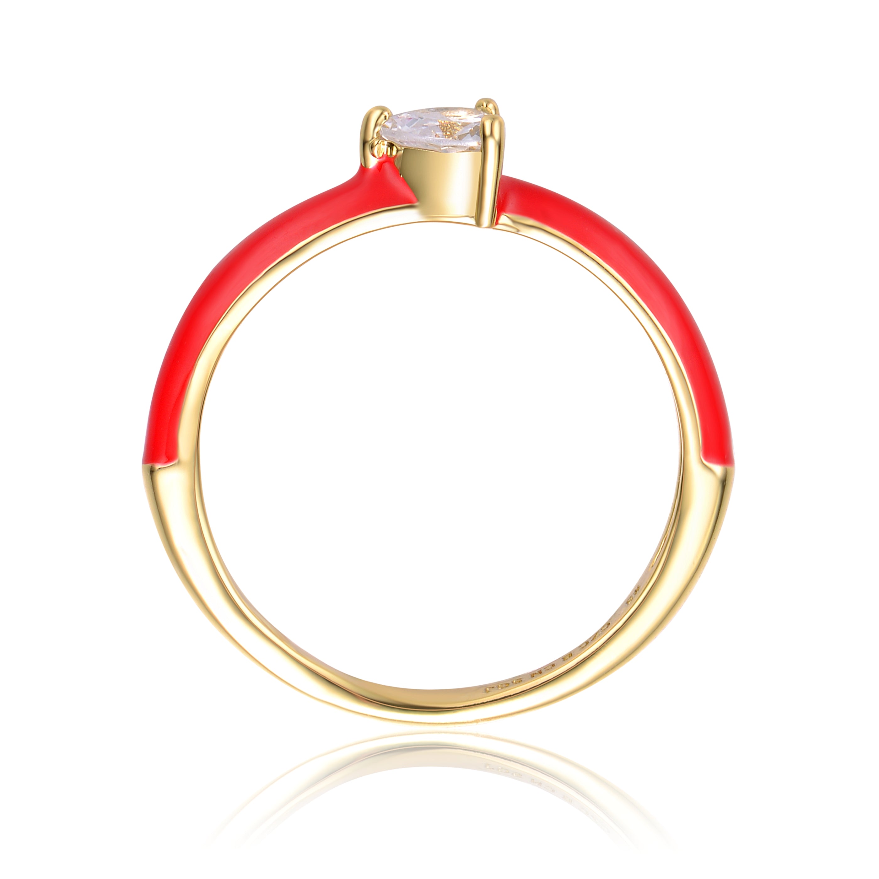 Kids/Teens 14k Yellow Gold Plated with Cubic Zirconia Heart Solitaire Pink Enamel Ring. Select this brightly polished 14k yellow gold plated stacking ring for your daily wardrobe, perfect for those who love hearts and heart jewelry. A sparkling heart-shaped cubic zirconia secured in a three-prong setting sits in the center. A rich magenta enamel coats the top of a shiny band, creating a versatile two-tone look. Finish your unique style with this cute design. Available in ring sizes: 4-7.