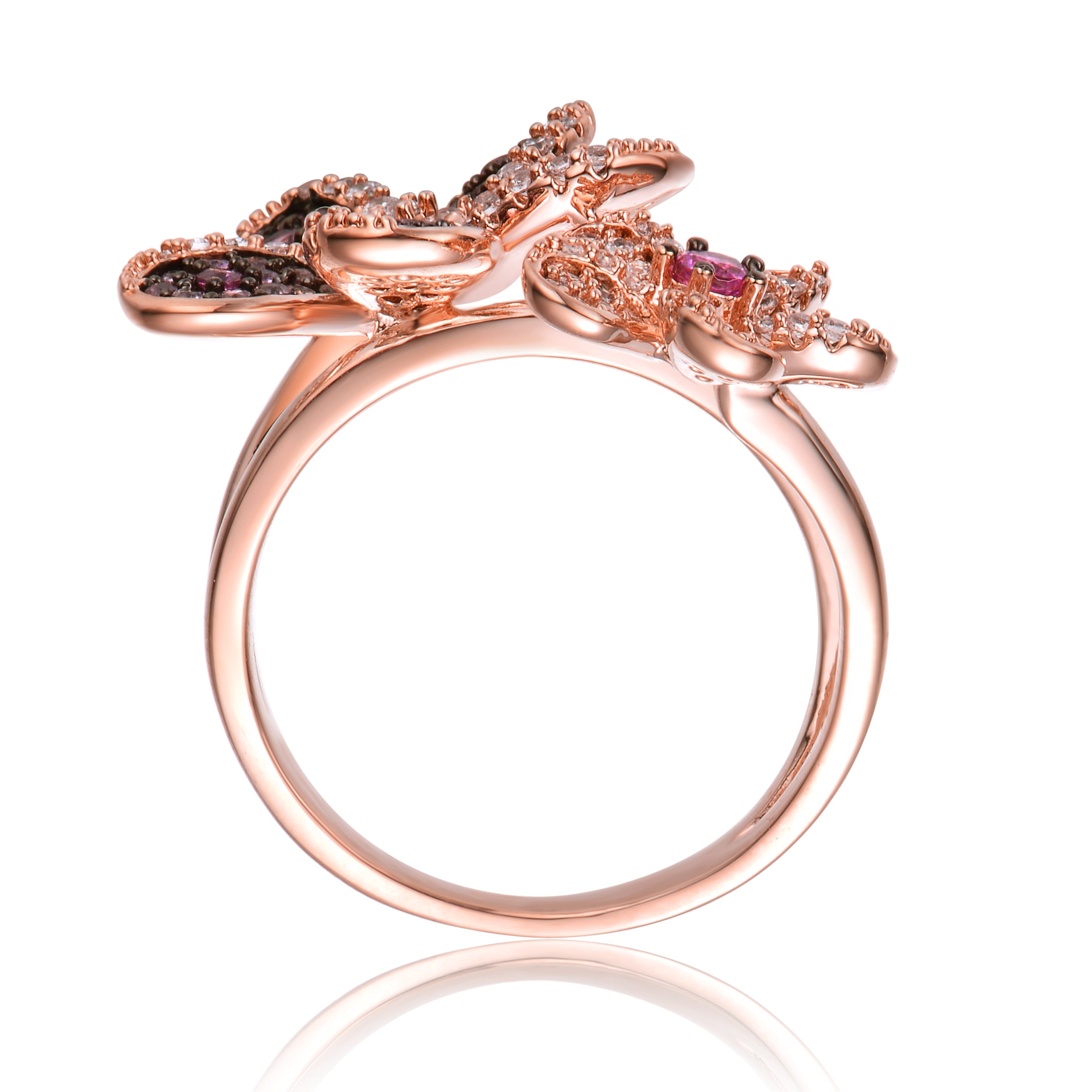 Rose Gold and Black Plated Multi Colored Cubic Zirconia Floral Ring