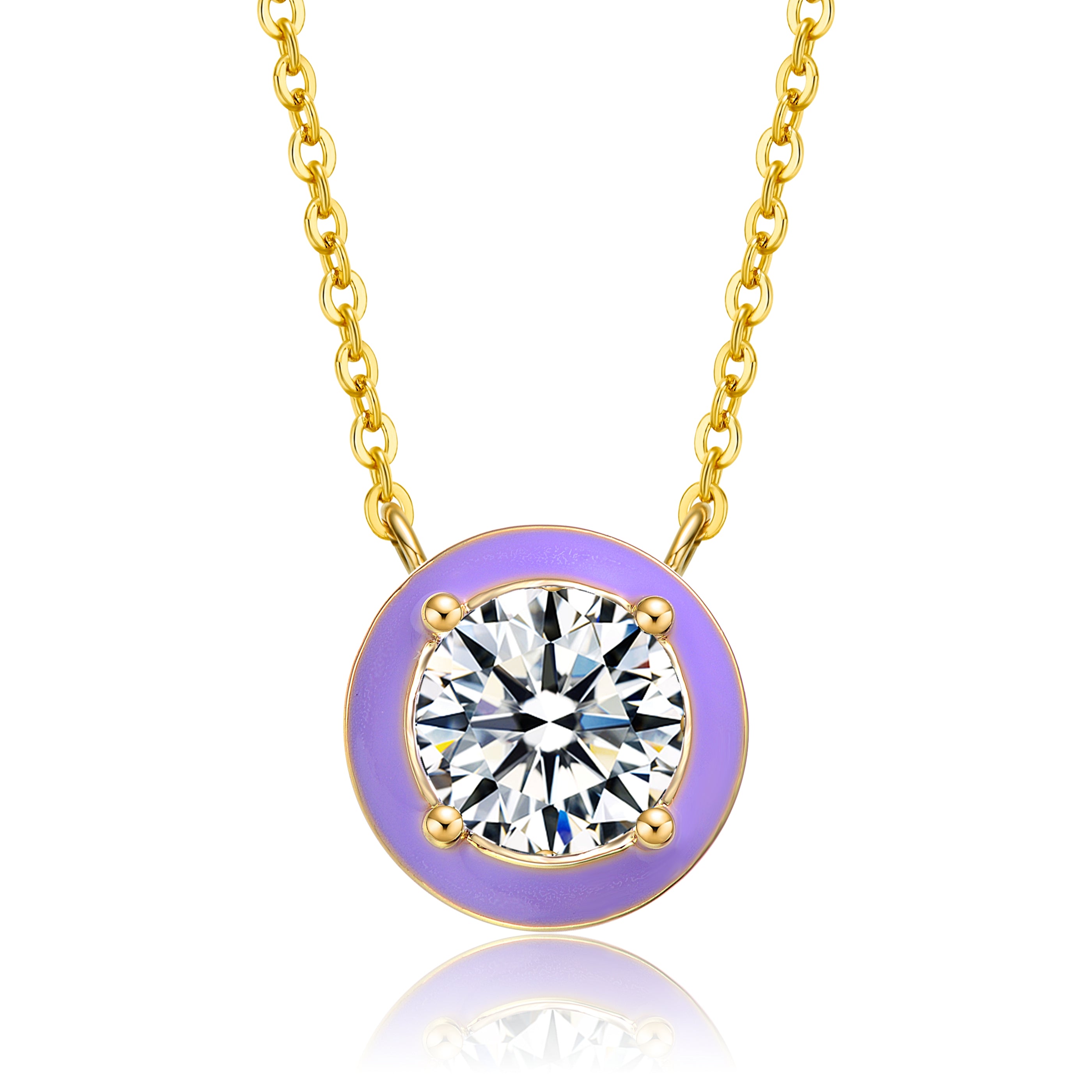 14k Yellow Gold with Cubic Zirconia Solitaire Blue/Purple Enamel Petite Halo Pendant Layering Necklace
