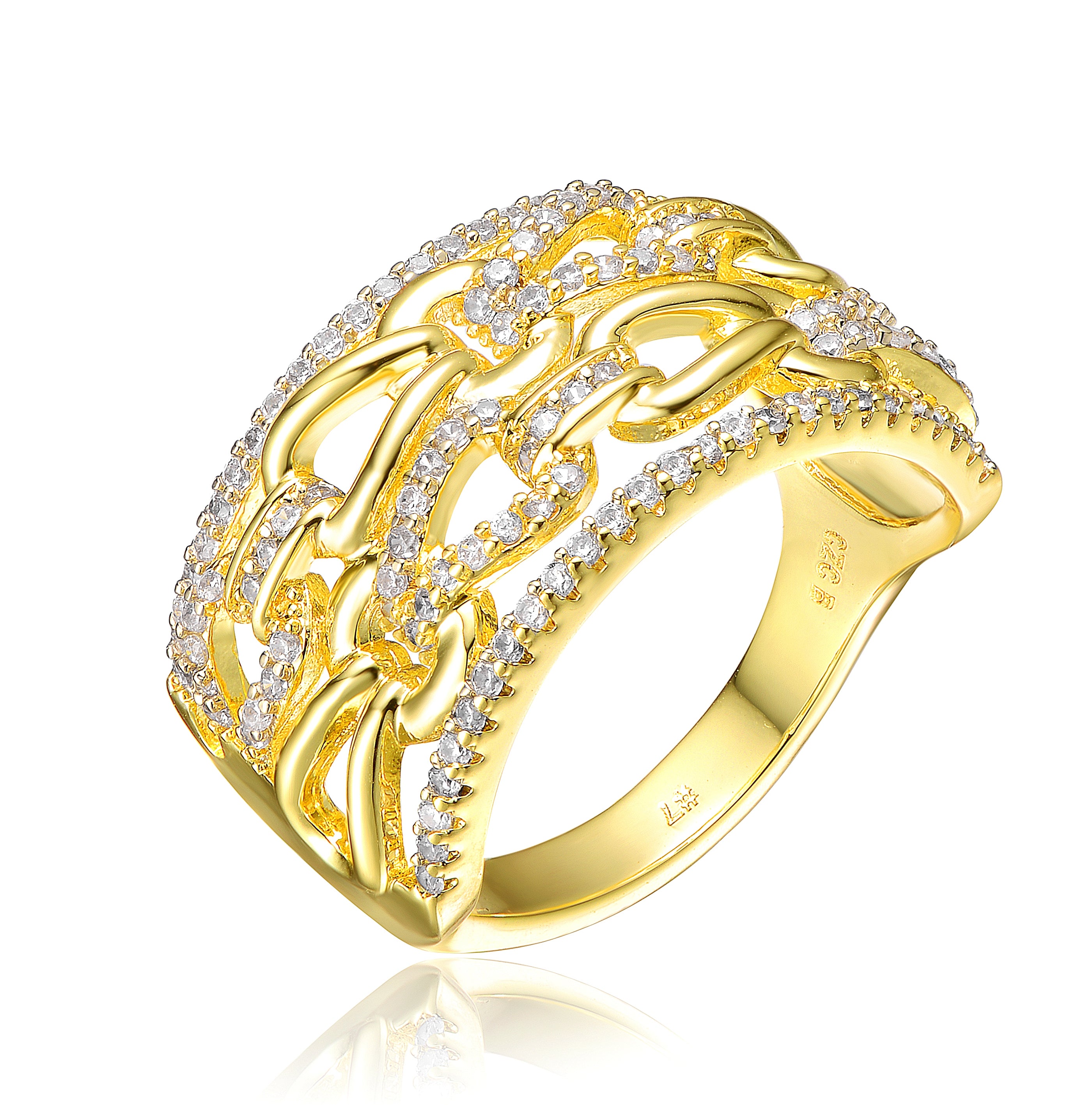 Gold Plated Cubic Zirconia Chain Band Ring