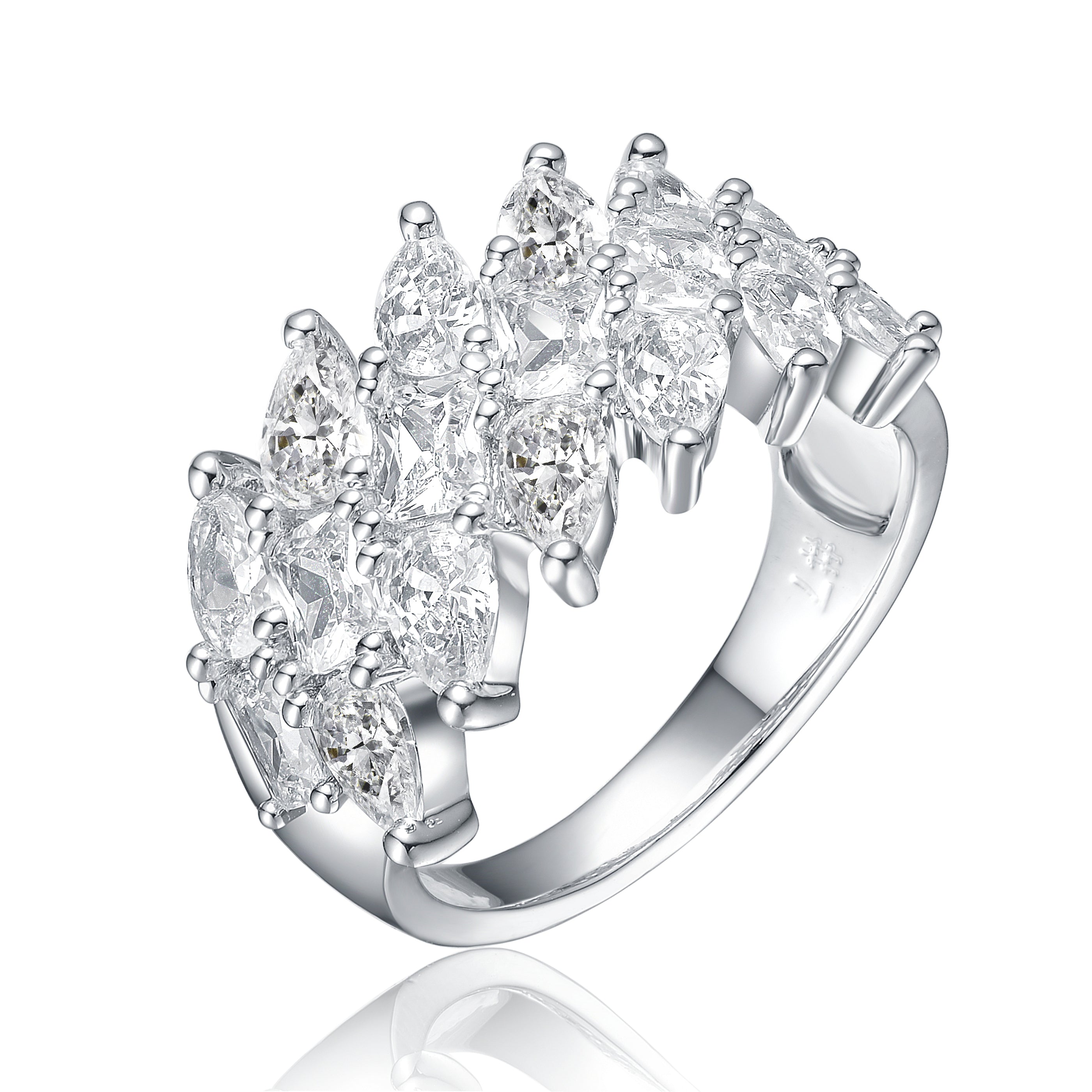 Rhodium Plated Oval Cubic Zirconia Band Ring