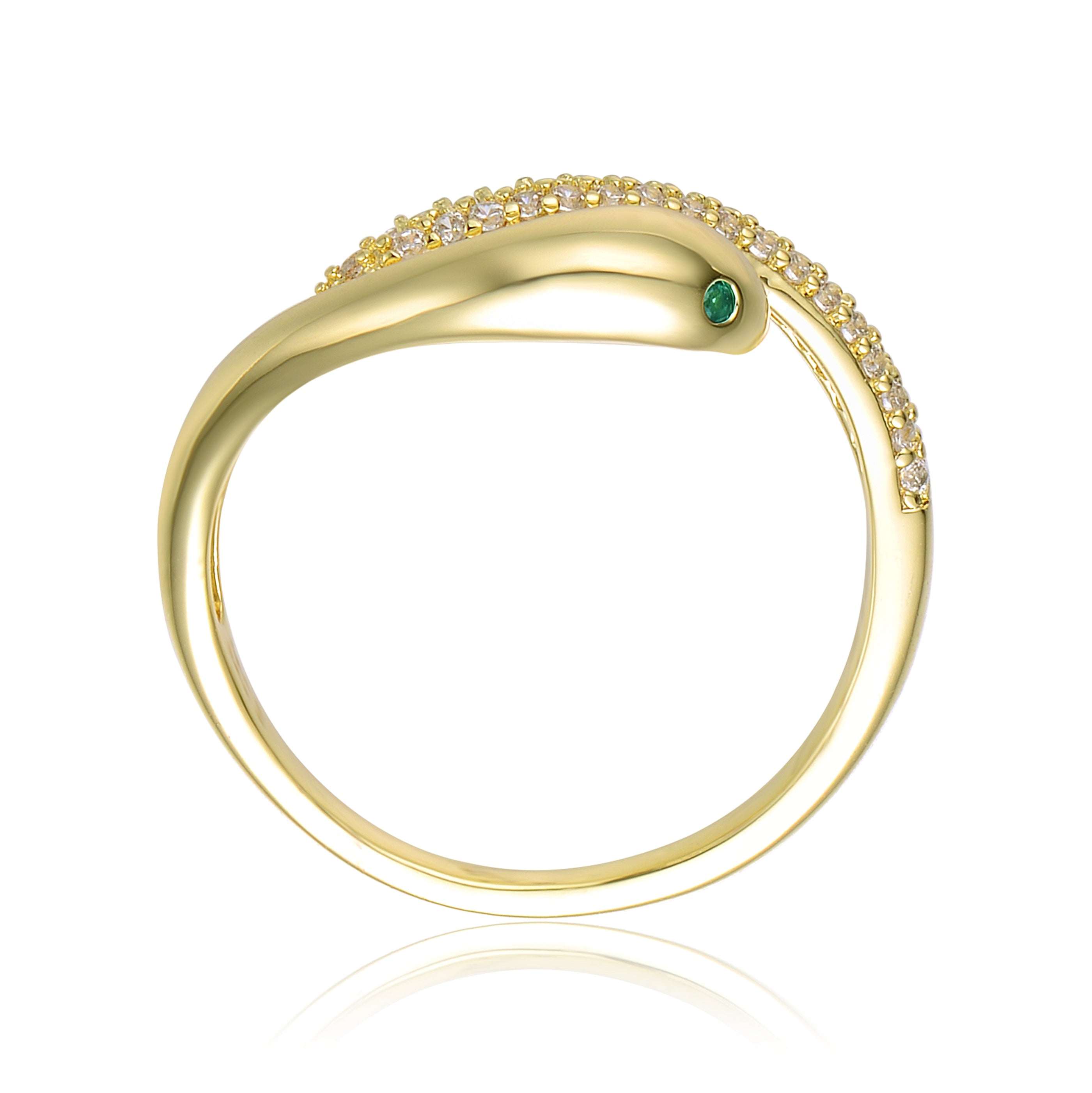 Emerald & Cubic Zirconia Coiled Snake Serpent Open Bypass Cuff Ring