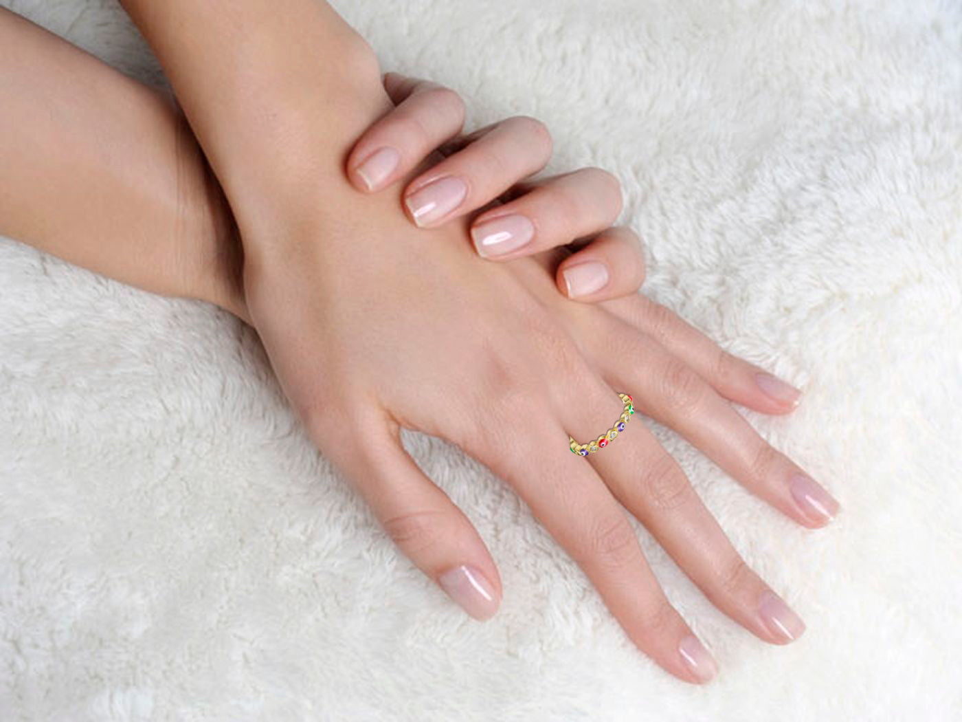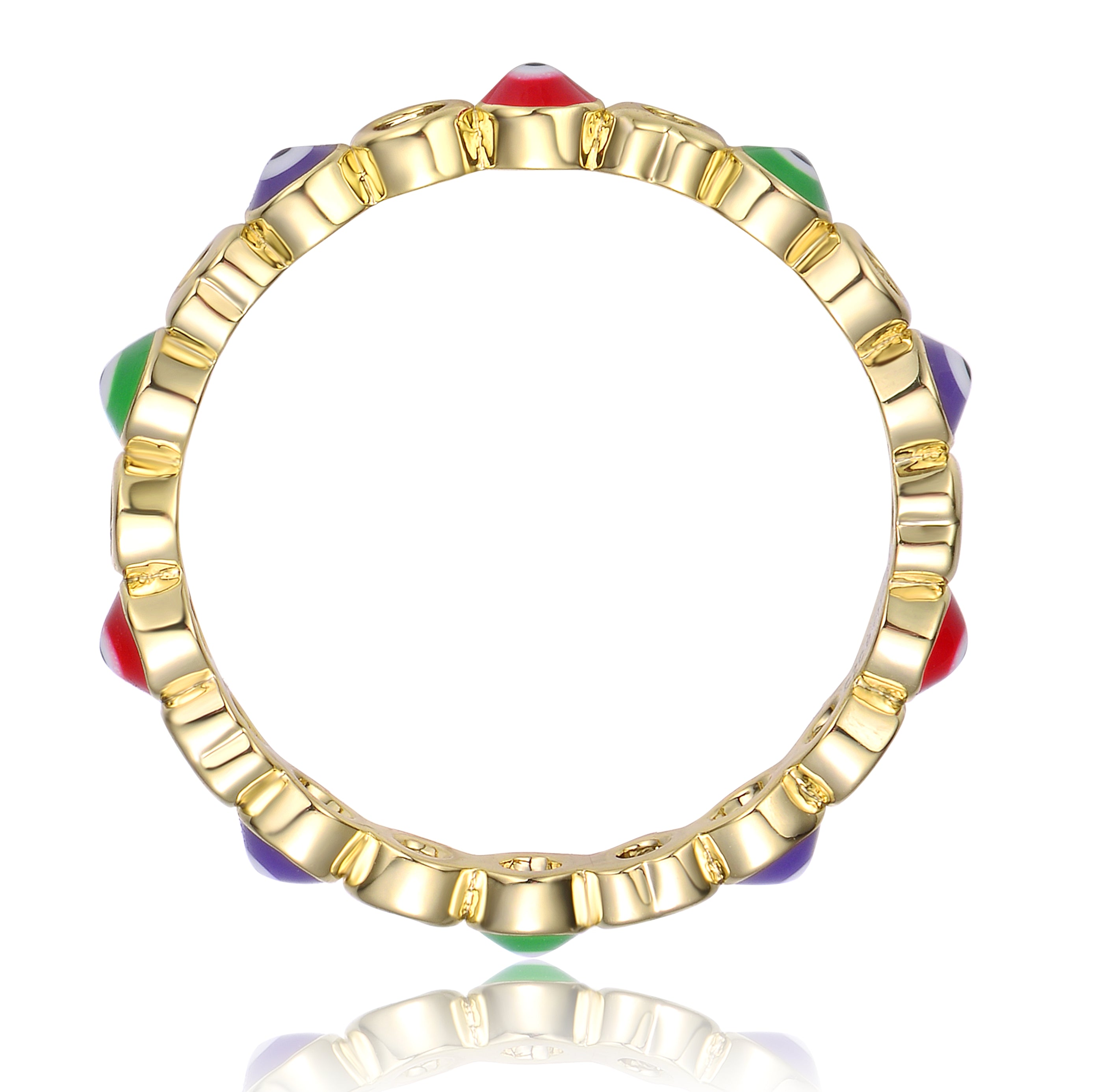 Kids/Teens 14k Yellow Gold Plated Colorful Enamel Evil Eye Stacking Ring
