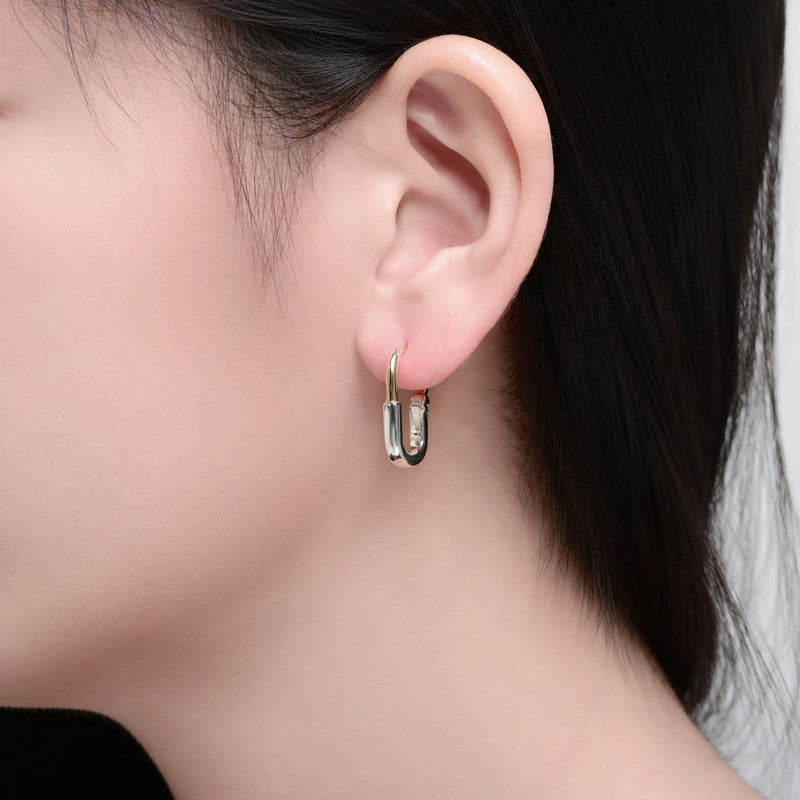 Two-Tone Sleek Oval Hoop Earrings