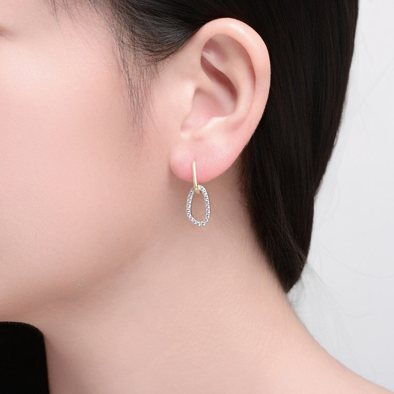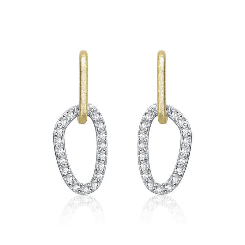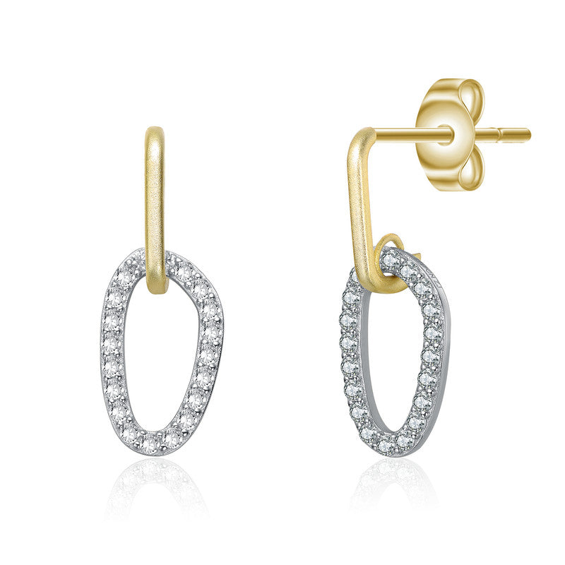 Two Tone with Clear Cubic Zirconia Oval Shaped Drop Earrings