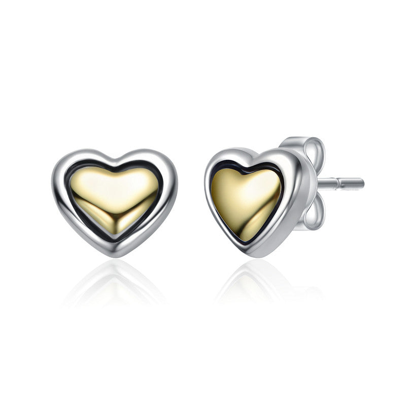Two-Tone Sleek Heart Stud Earrings