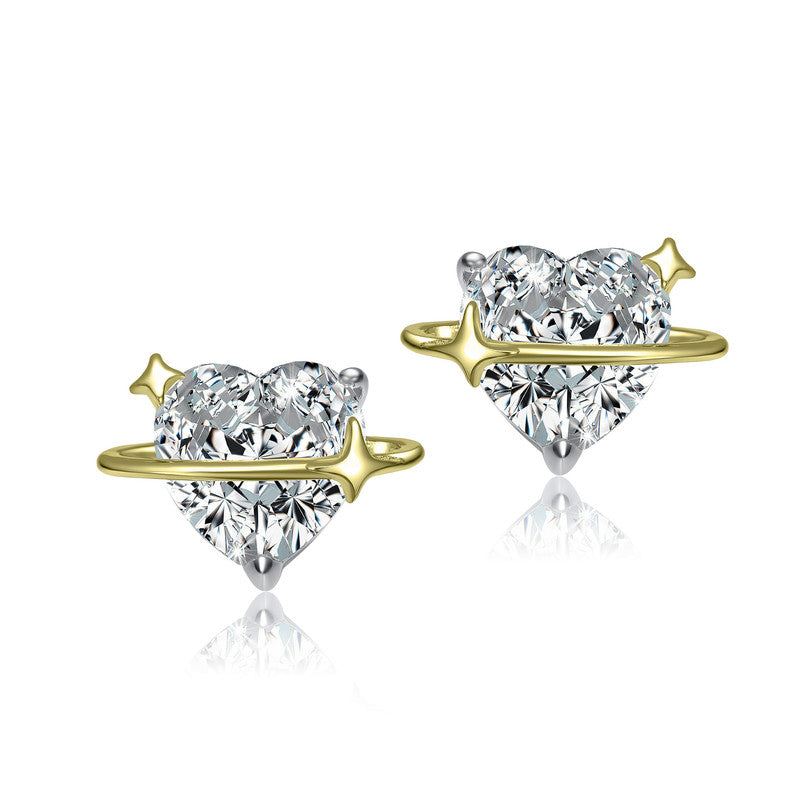 Two Tone with Clear Cubic Zirconia Heart & Star Design Stud Earrings