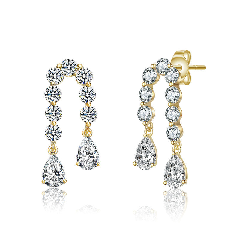 14K Gold Plated with Clear Cubic Zirconia Geometric Drop Earrings