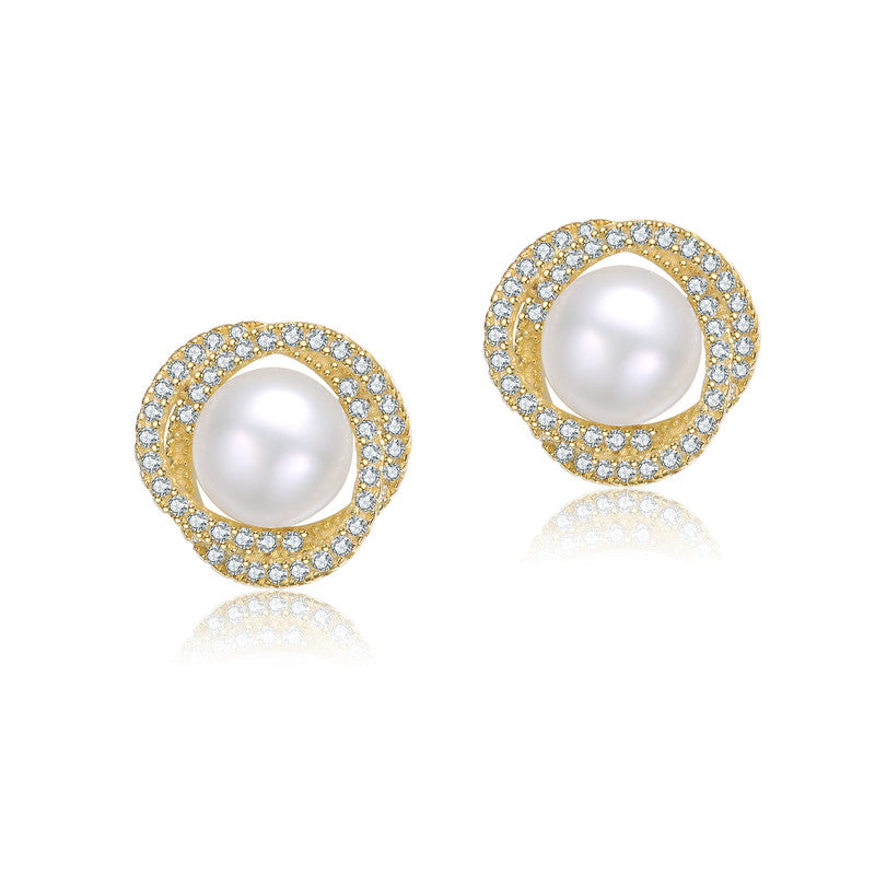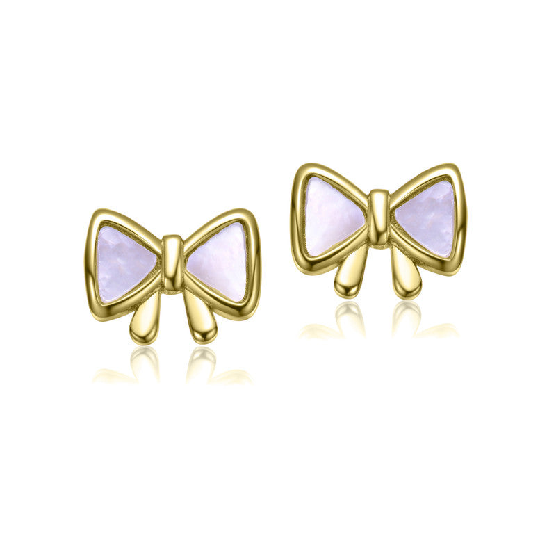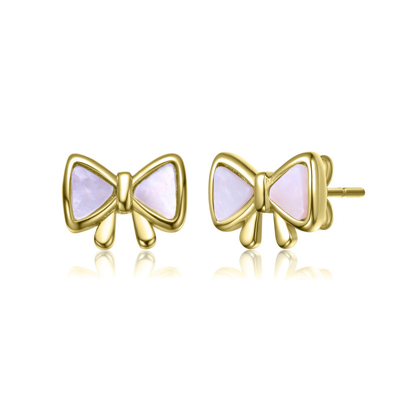 14K Gold Plated with Clear Cubic Zirconia & Mother of Pearl Stud Earrings