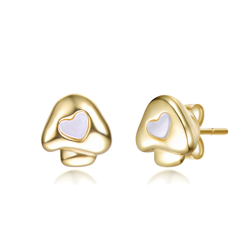 14K Gold Plated with Elegant Green Enamel Heart Mushroom Design Stud Earrings