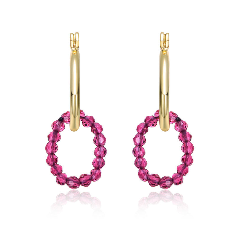 14K Gold Plated with Colored Beaded Hoop Earrings