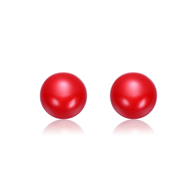 14k Yellow Gold Plated Stud Earrings with Red Enamel Round Pearl for Kids