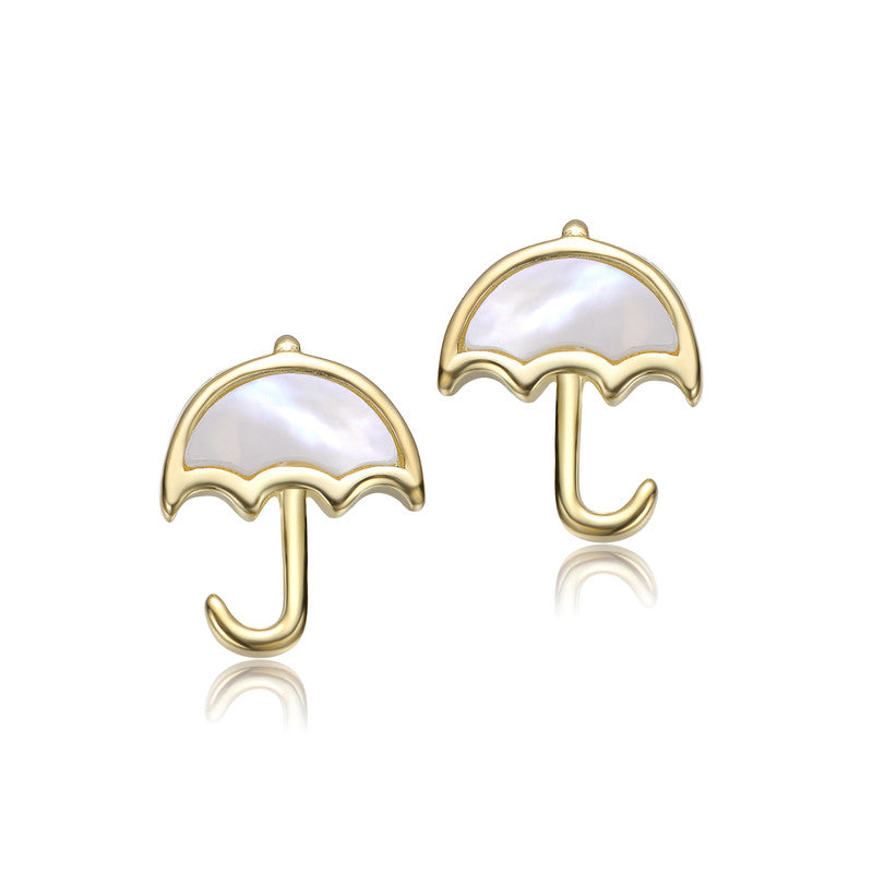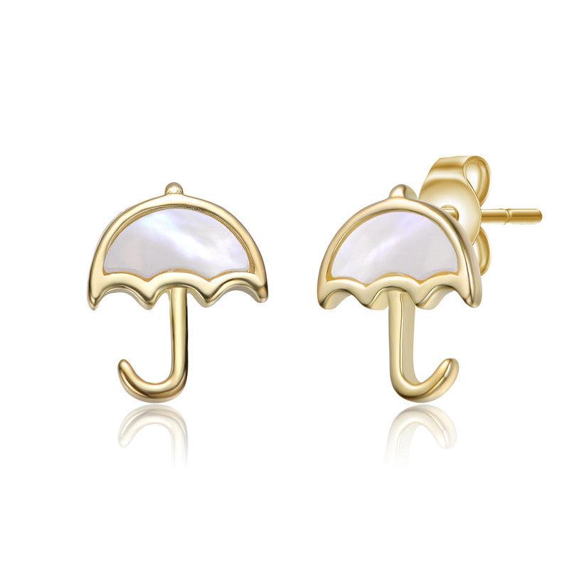14K Gold Plated with White Mother Of Pearl Umbrella Design Stud Earrings For Kids