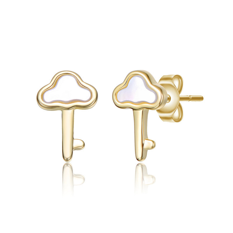 14K Gold Plated with White Mother Of Pearl Cloud Design Stud Earrings For Kids