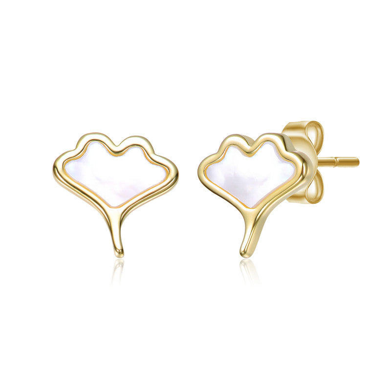 14K Gold Plated with White Mother Of Pearl Openwork Heart Stud Earrings