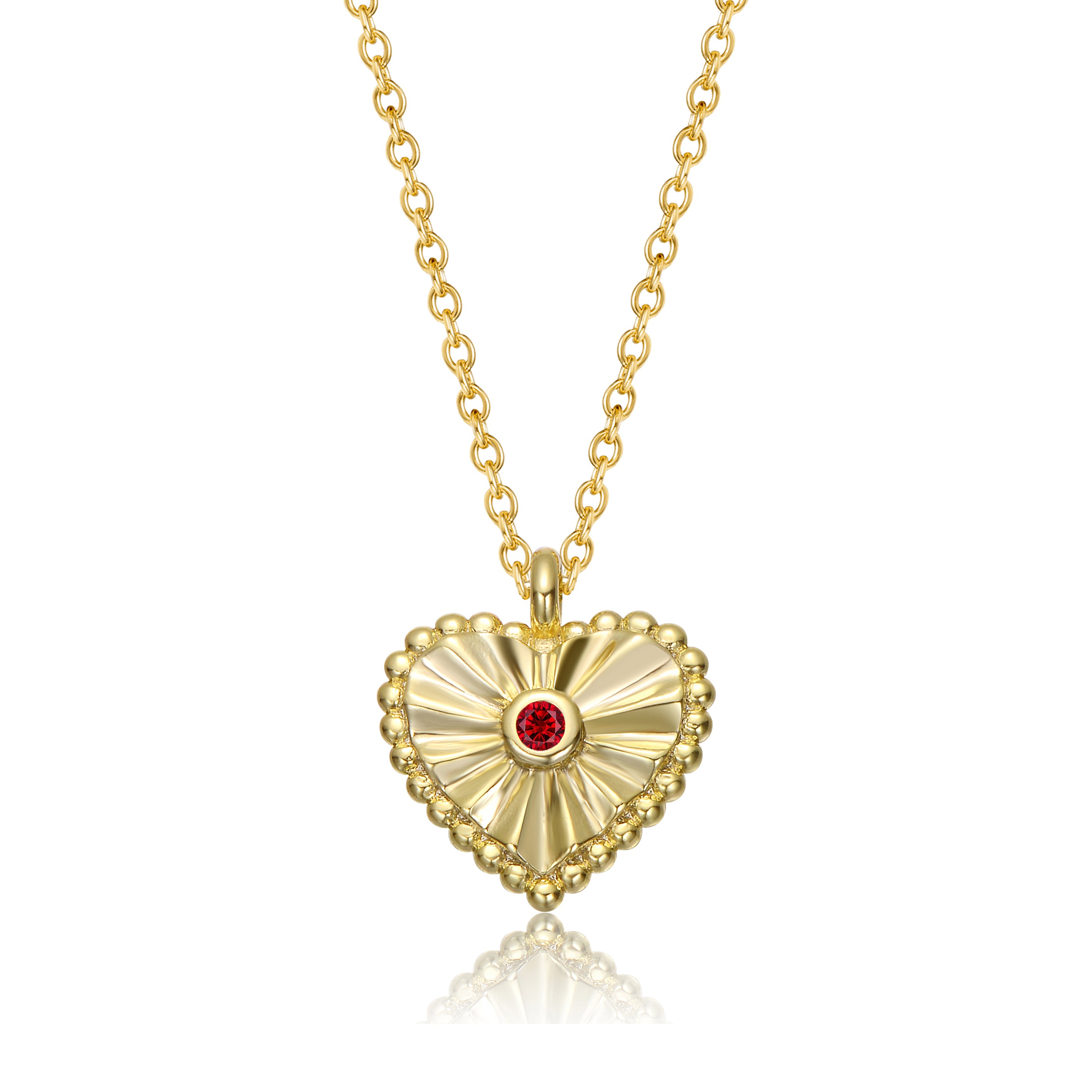 14k Gold Little Heart Pendant Necklace with Ruby Cubic Zirconia
