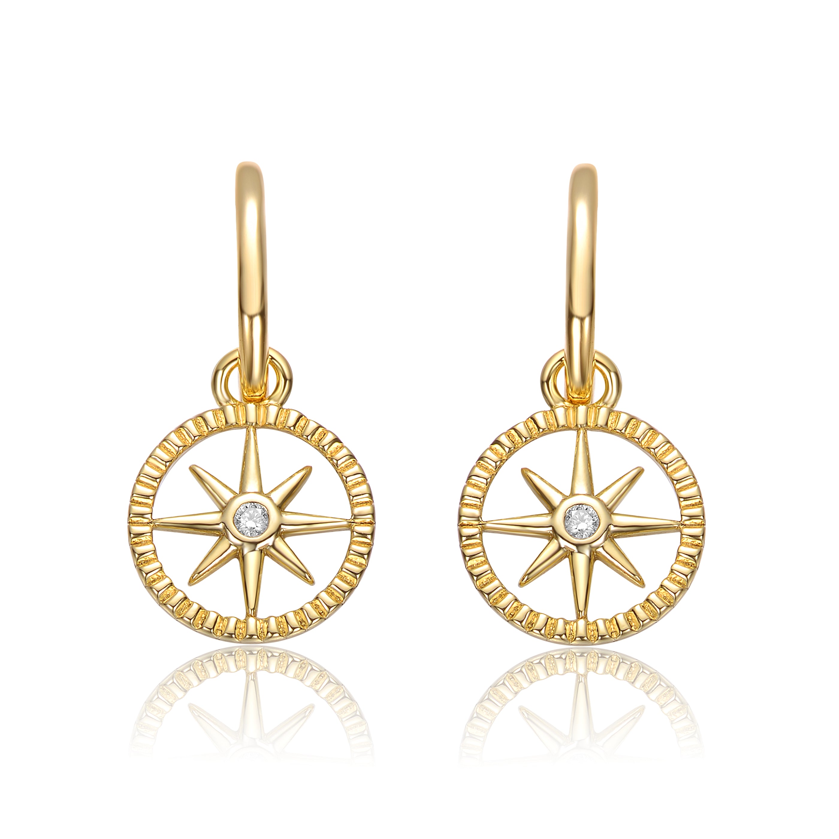 14k Gold Plated Cubic Zirconia Guiding Star Compass Dangle Earrings
