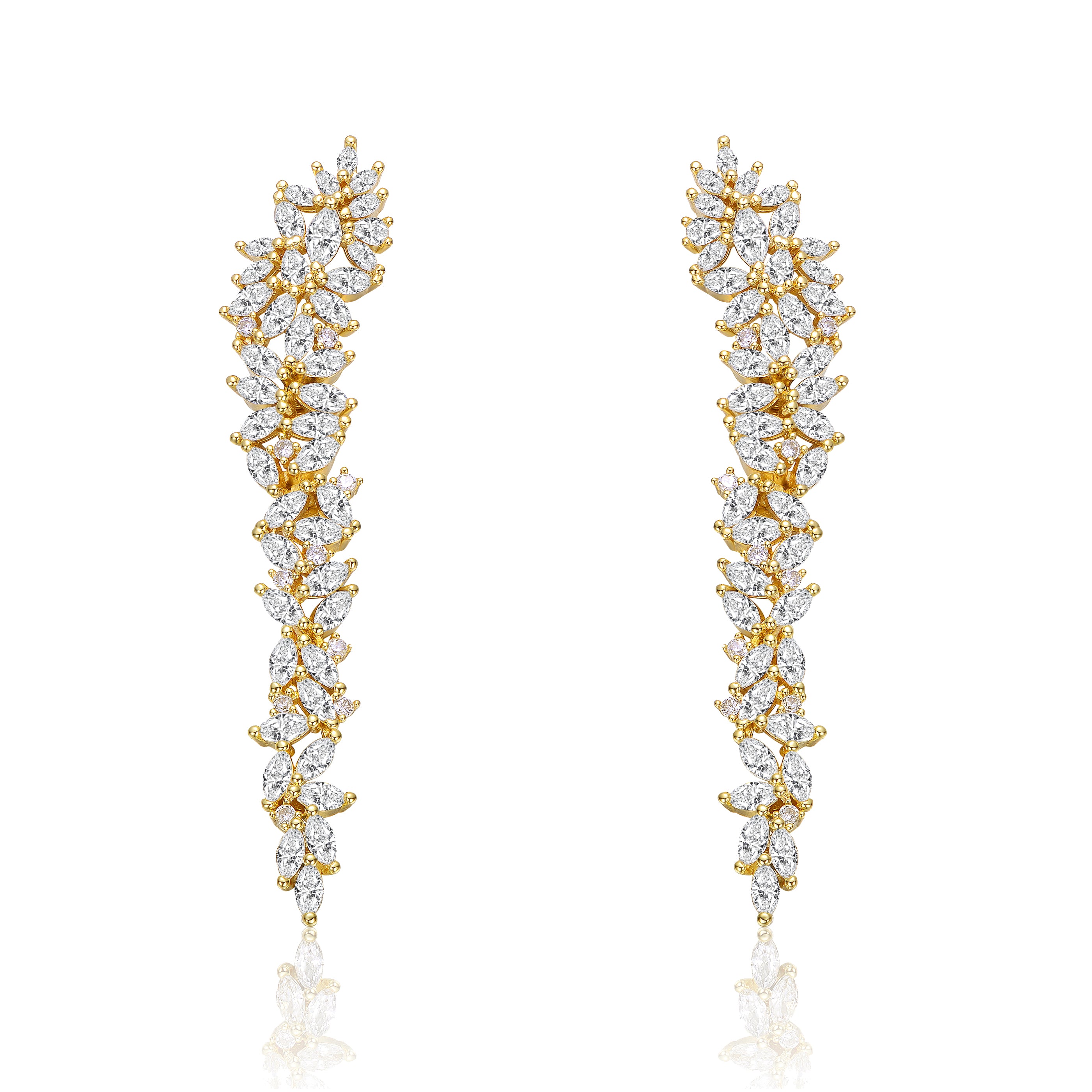 14k Gold Plated Cubic Zirconia Waterfall Cluster Linear Earrings