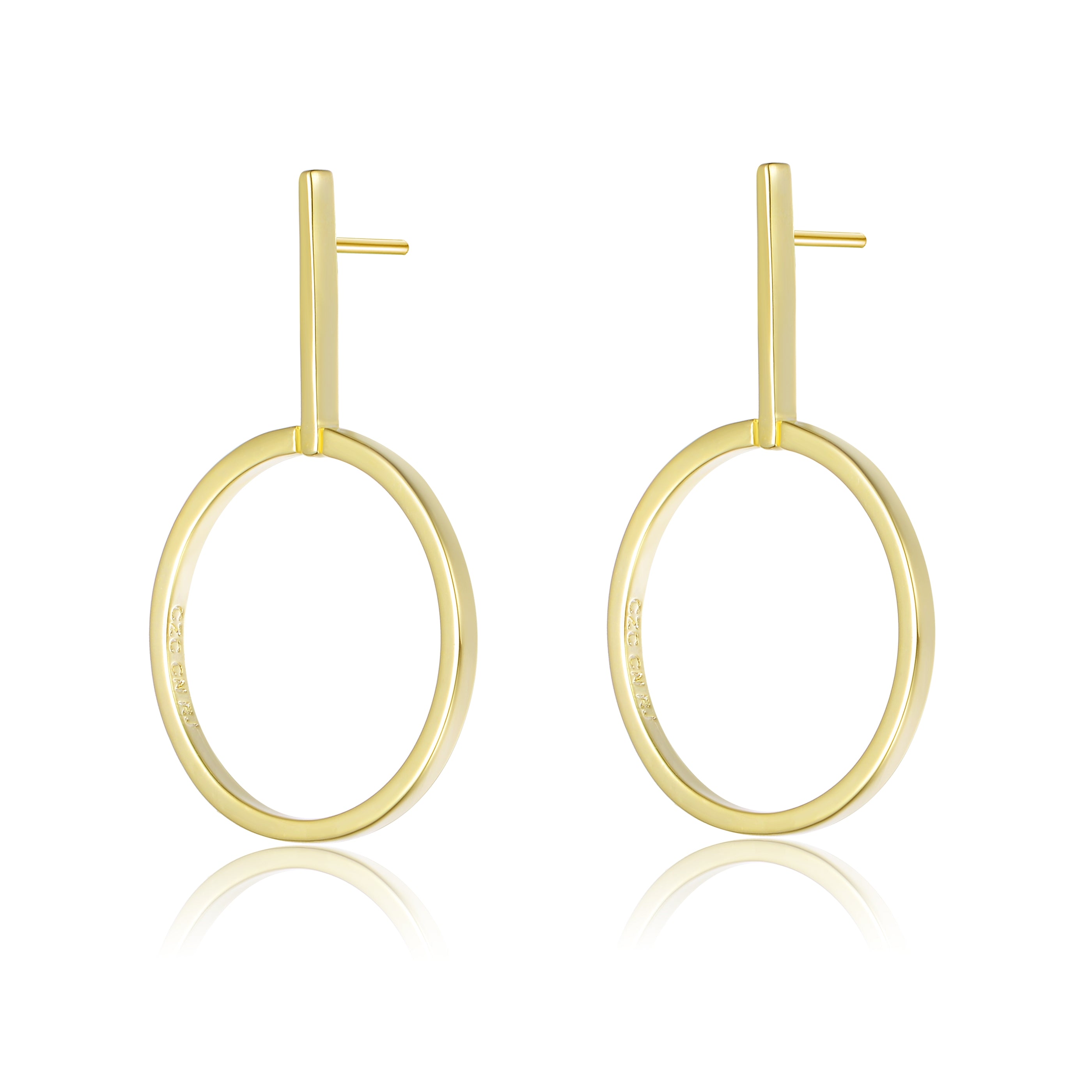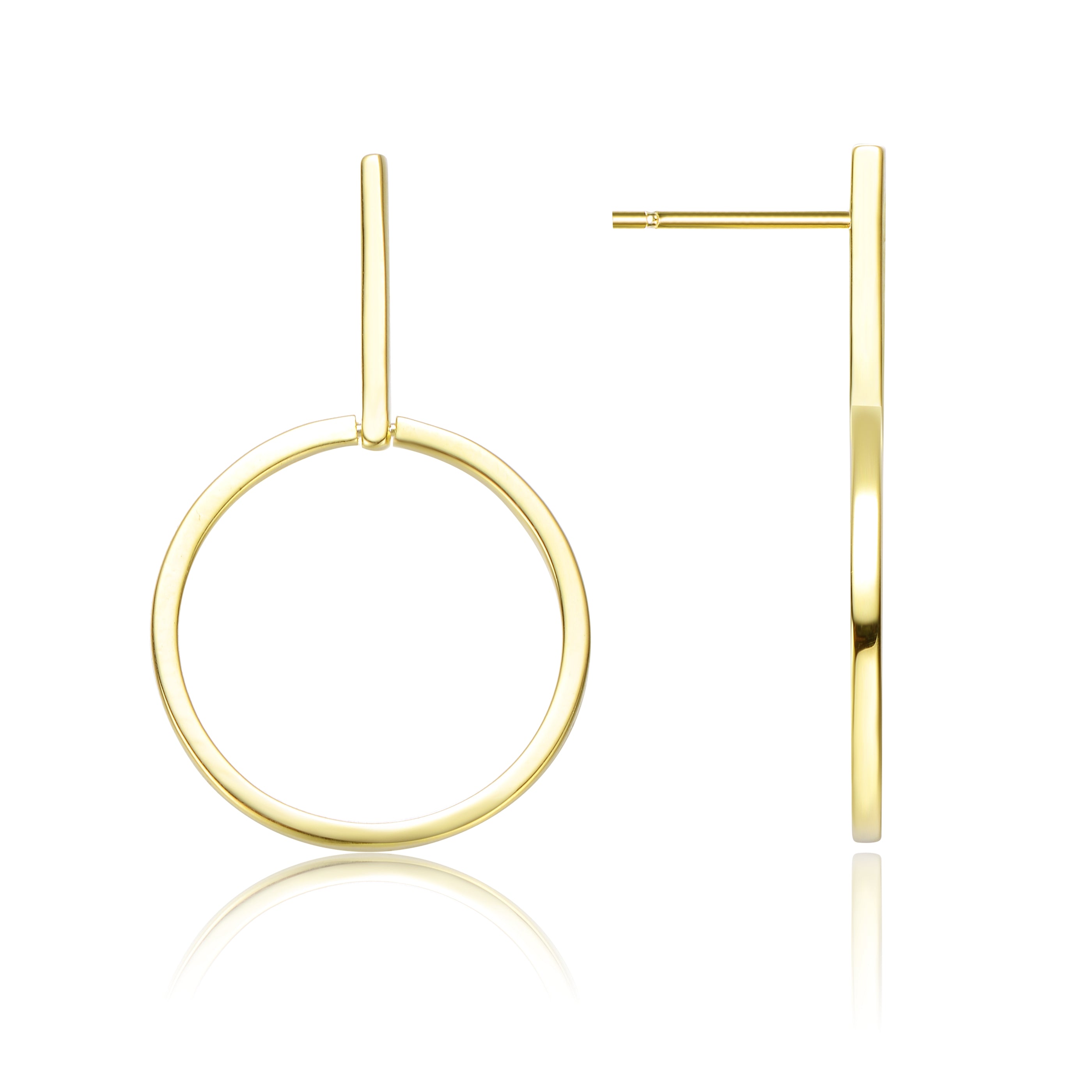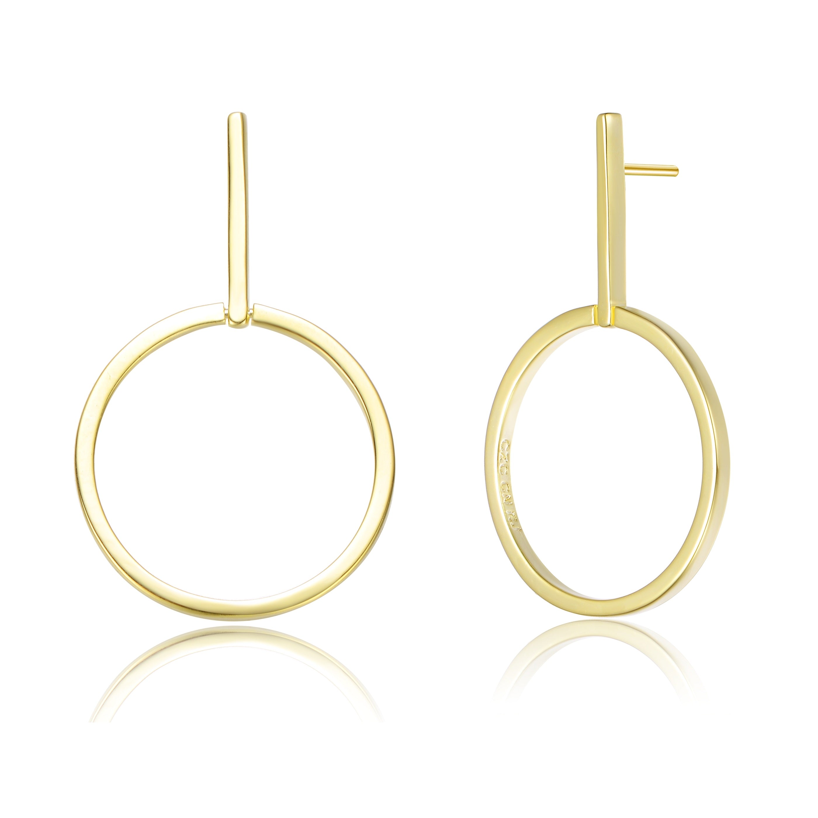 Classy 14K Gold Plated Round Drop Earrings. These earrings feature interesting two shape design made out of two pieces. The first piece is a long bar and the other is a round piece, both made out of solid metal. Crafted with 14K Gold Plating and secure with a butterfly closure. It's a unique piece of jewelry for all combinations. These also make a sensational gift for a special birthday or occasion.