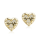 These charming stud earrings feature a delicate heart shape crafted in a warm 14K gold plating. The surface of the heart is beautifully embellished with shimmering pave crystals, adding a touch of sparkle and sophistication. A stylized electrocardiogram (EKG) line runs across the center of the heart, creating a unique and meaningful design. These earrings are perfect for adding a subtle yet stylish accent to any outfit, making them a wonderful gift or a lovely addition to your own jewelry collection.