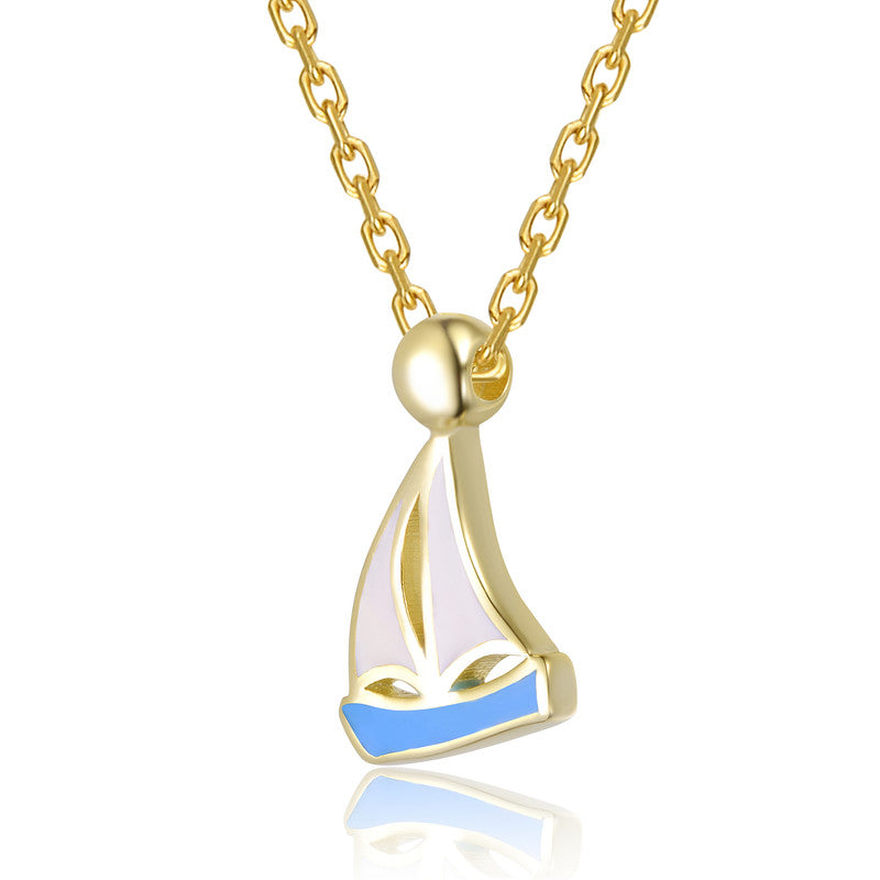 14K Gold Plated with Blue Enamel Elegant Sailboat Design Pendant Necklace For Kids