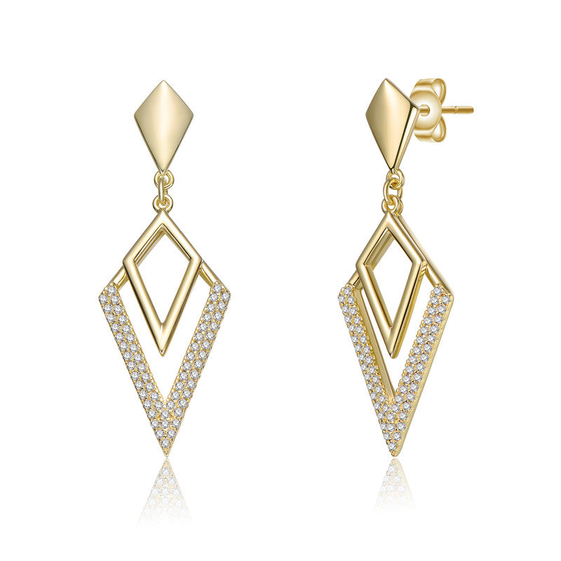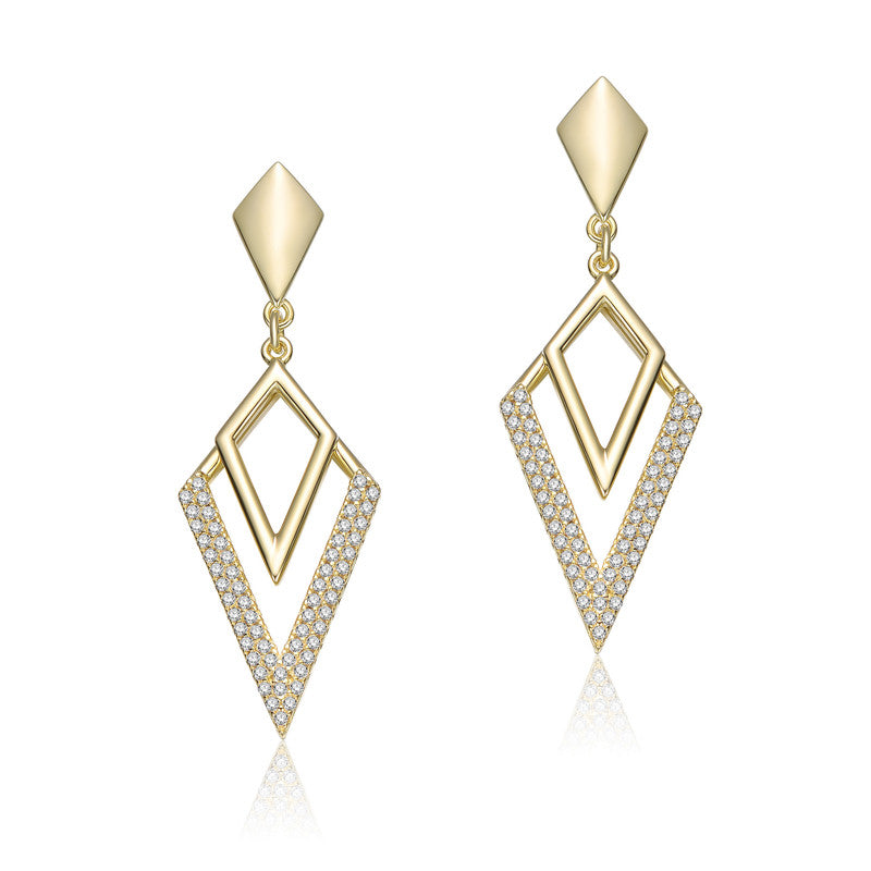 14K Gold Plated with Clear Cubic Zirconia Geometric Drop Earrings