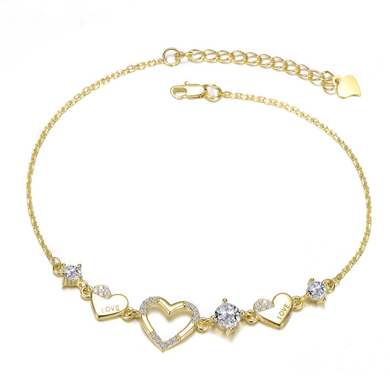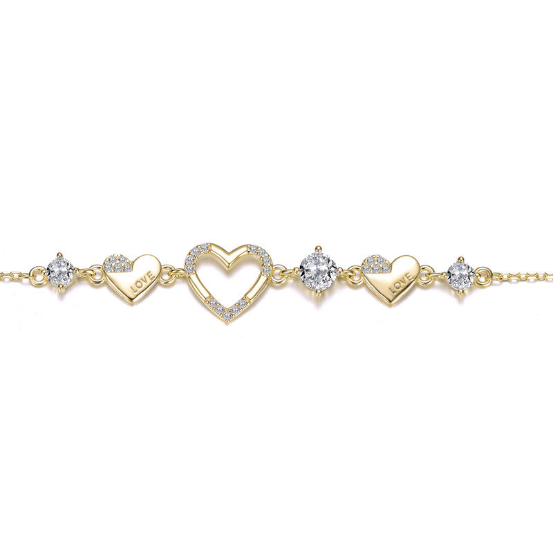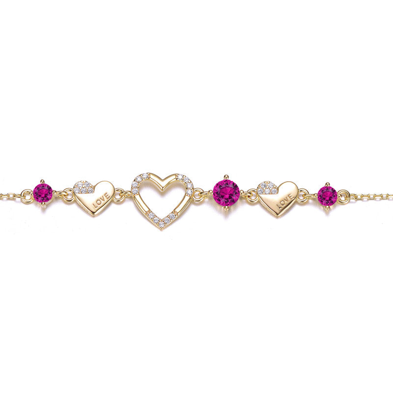 14K Gold Plated with Colored Cubic Zirconia Hearts Design Bracelet