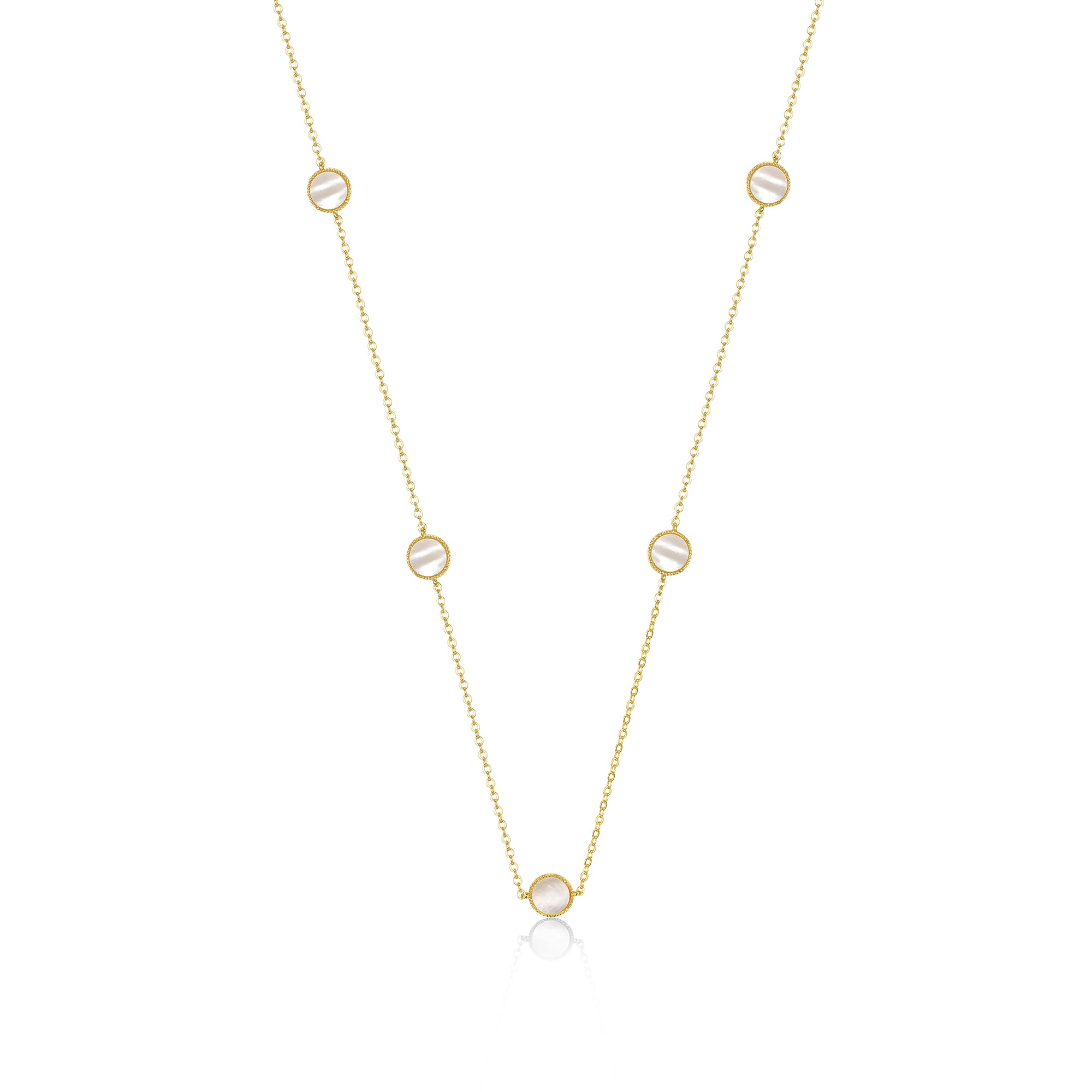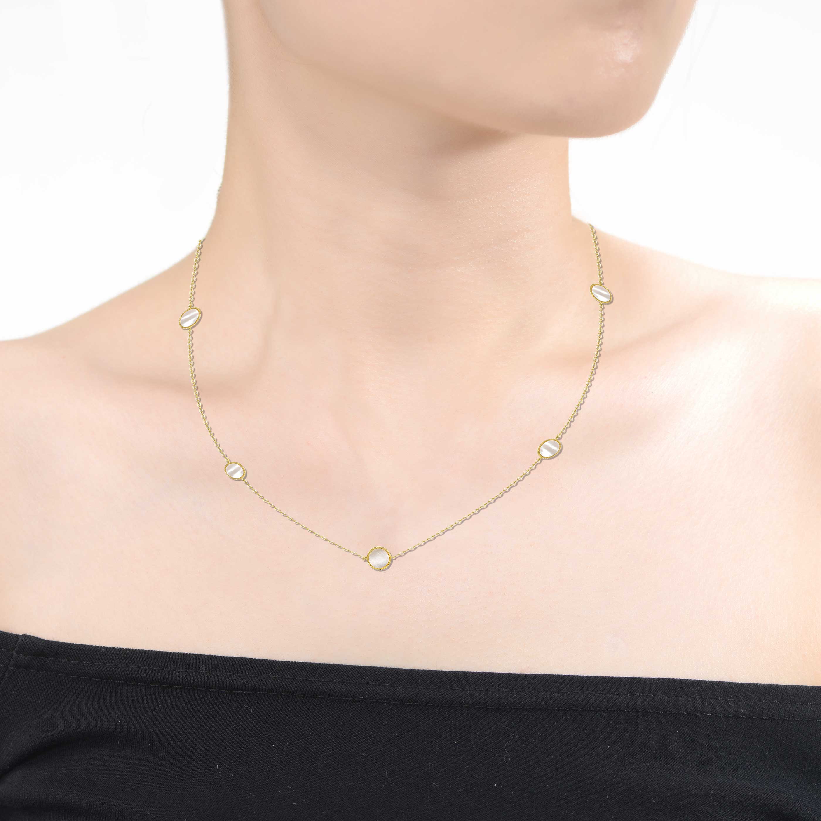 14k Gold Plated with Cubic Zirconia Halo Mariner Link Station Chain Necklace