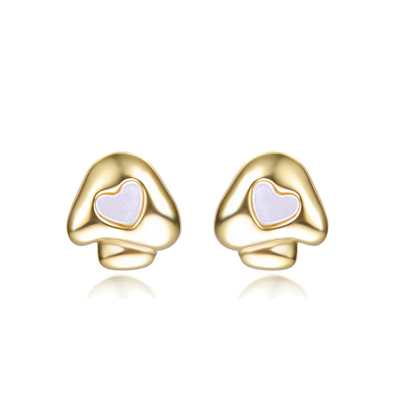 Add a whimsical yet sophisticated touch to your style with these stunning 14K gold plating mushroom-shaped earrings. Featuring a glossy 14K gold plating finish, each piece is adorned with a charming green heart detail at its center, offering a playful yet refined contrast. Perfect for casual outings or special occasions, these earrings strike a balance between elegance and uniqueness, making them a standout addition to your jewelry collection. A delightful blend of charm and luxury!
