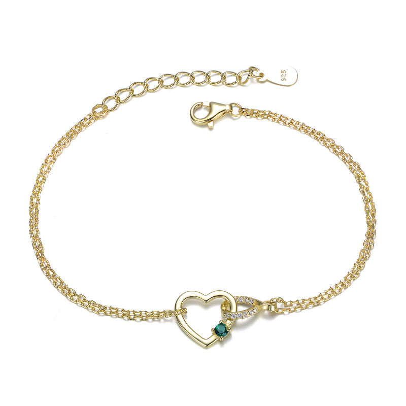 14K Gold Plated with Emerald Green Cubic Zirconia Heart Charm Bracelet