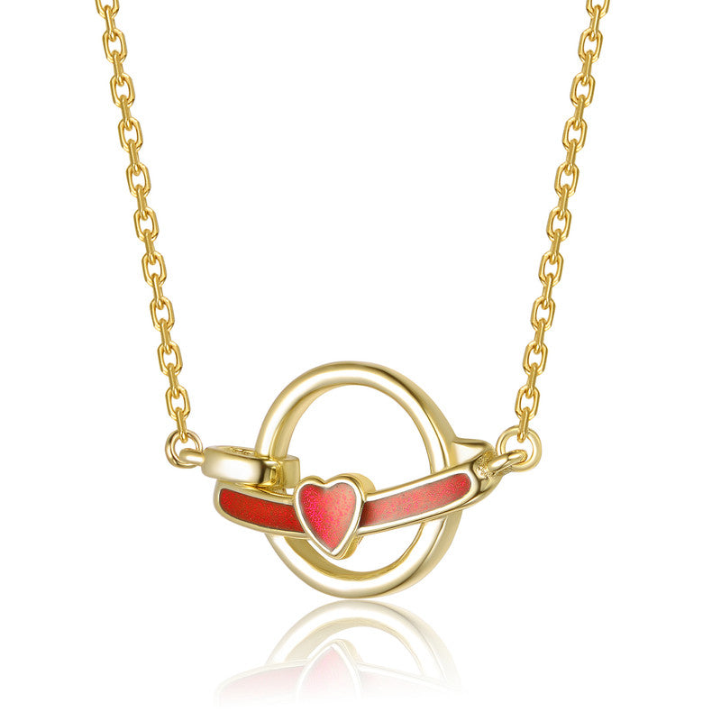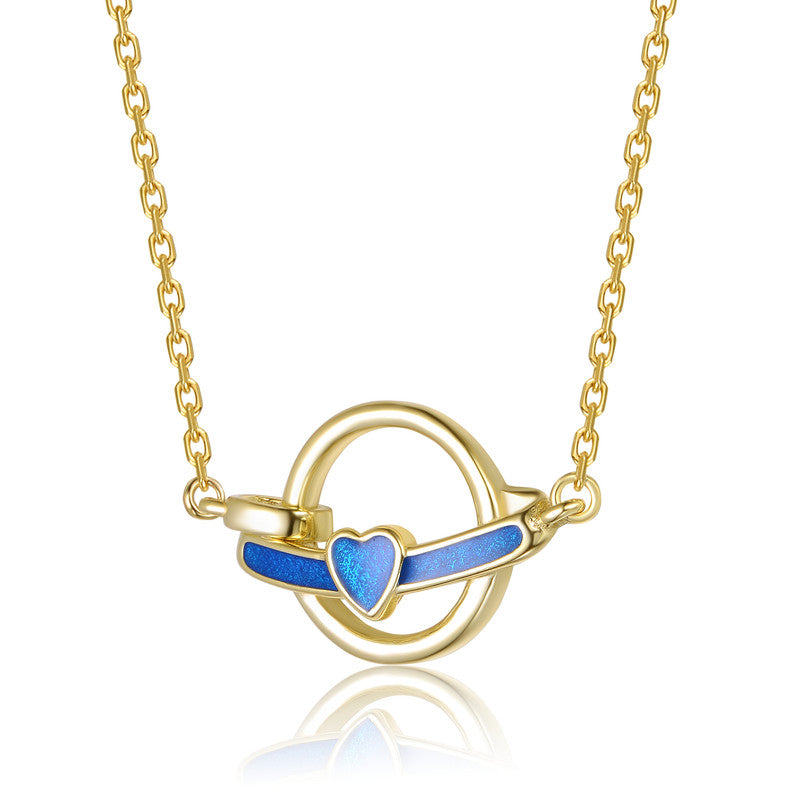 This refined 14K gold plating necklace presents a timeless design with a central circular necklace featuring a delicate heart motif. The enamel detailing comes in three vibrant options: red, blue and pink, offering versatility to match different styles and moods. Flanked by two elegant 14K gold plating rings, the necklace gracefully connects to a fine chain, creating a sophisticated look. Perfect for gifting or adding a touch of charm to any outfit, this necklace combines modern appeal with classic elegance.