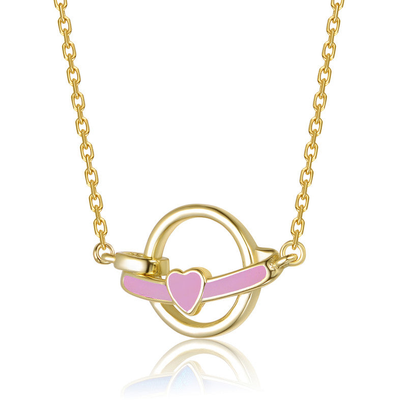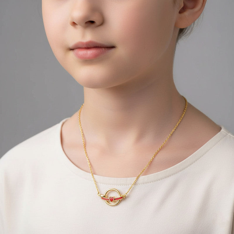 14K Gold Plated with Intertwined Rings & Colored Enamel Heart Necklace For Kids
