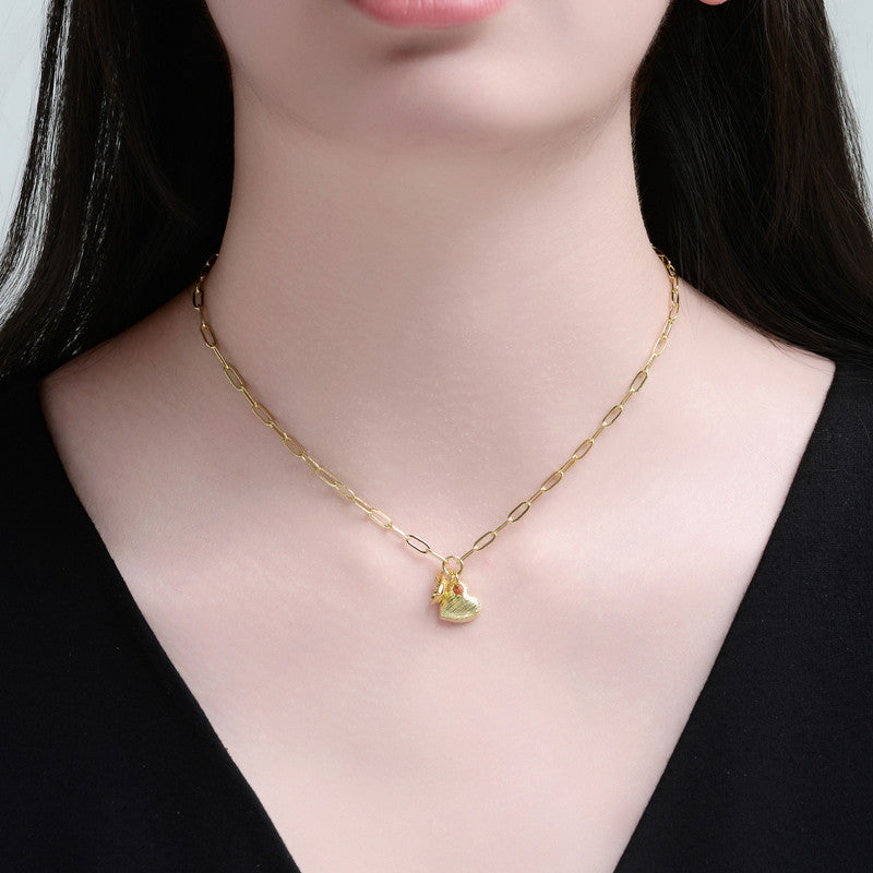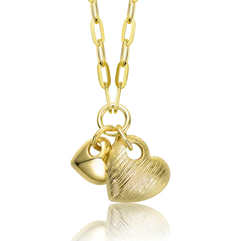 14K Gold Plated with Link Chain Hearts Necklace