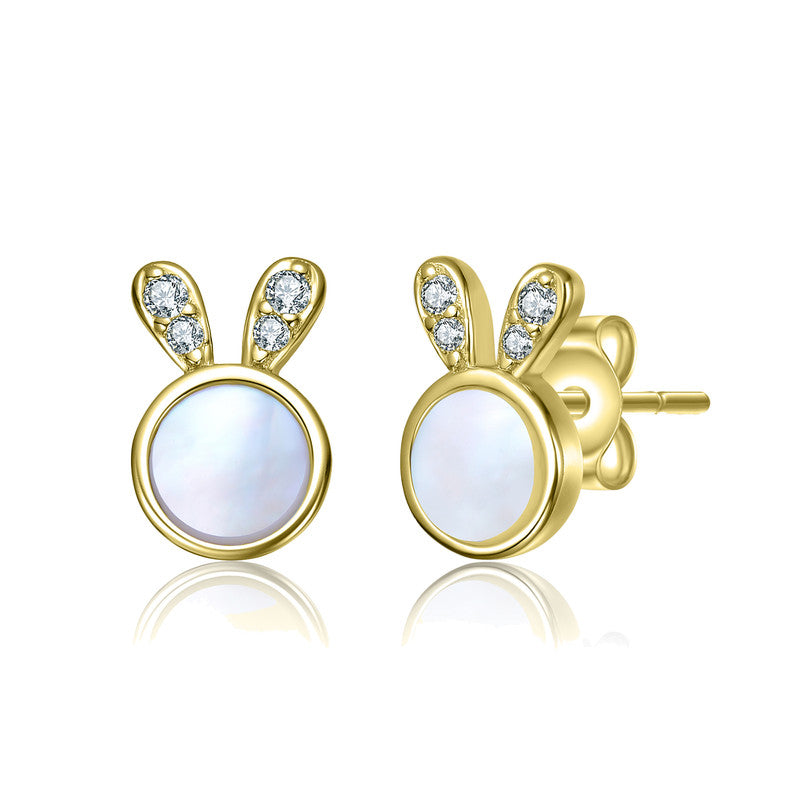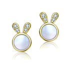 14K Gold Plated with Mother Of Pearl & Clear Cubic Zirconia Bunny Design Stud Earrings