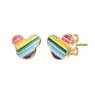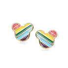 14K Gold Plated with Multi Color Enamel Mickey Mouse Rainbow Stud Earrings For Kids