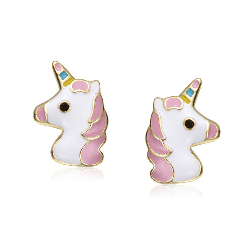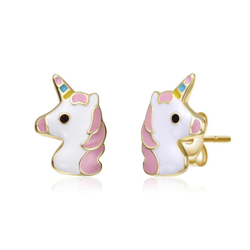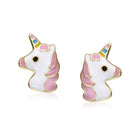14K Gold Plated with Multi Color Enamel Unicorn Stud Earrings