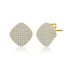 14K Gold Plated with Paved Clear Cubic Zirconia Square Stud Earrings