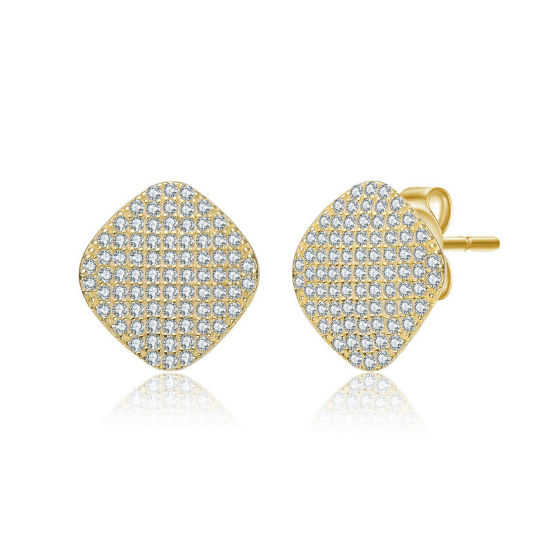 Elevate your look with these exquisite 14K gold-plated square stud earrings. Featuring a sleek design, the studs are adorned with paved clear cubic zirconia stones, creating a shimmering effect that exudes sophistication and charm. Perfect for both day-to-night transitions, these earrings offer timeless beauty and effortless elegance, making them an essential addition to any jewelry collection. Whether you're dressing up for a special occasion or enhancing your everyday style, these radiant earrings will add just the right touch of sparkle.