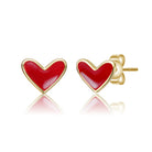 14K Gold Plated with Red Enamel Heart Stud Earrings