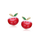 14K Gold Plated with Red, Green & White Enamel Apple Stud Earrings For Kids