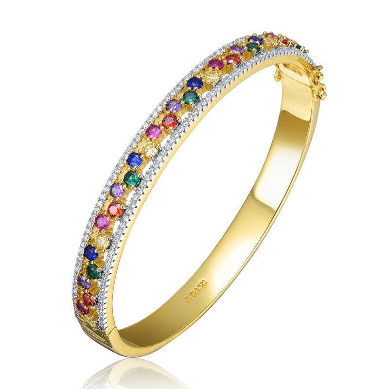 14K Gold Plated with Round Clear & Multi-Colored Cubic Zirconia Bangle Bracelet