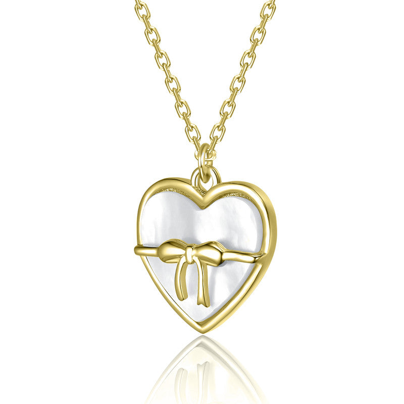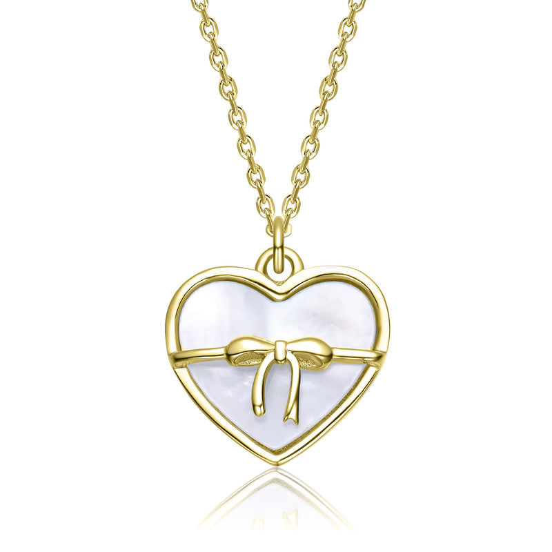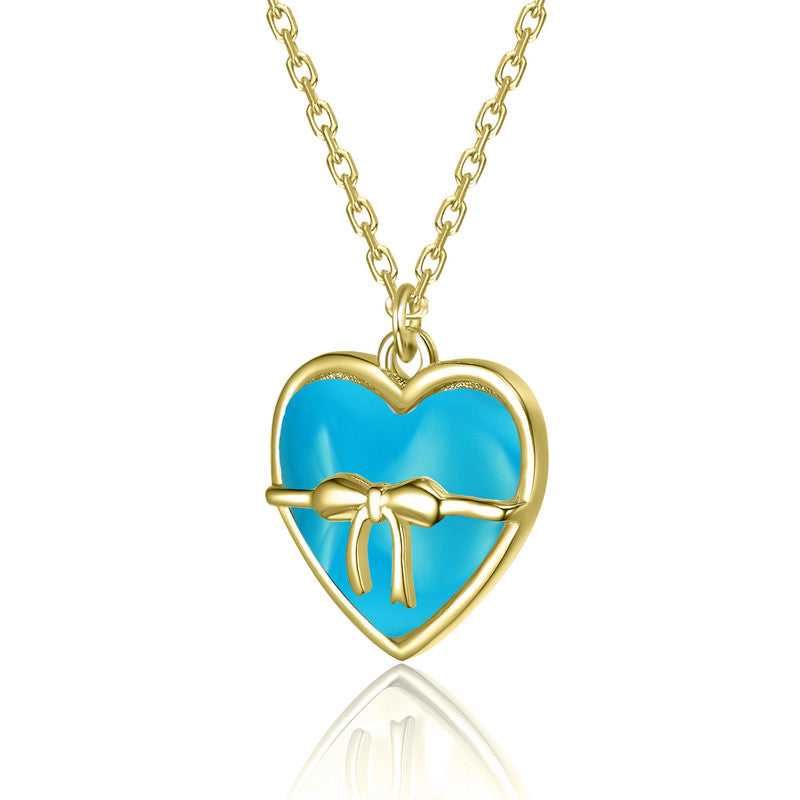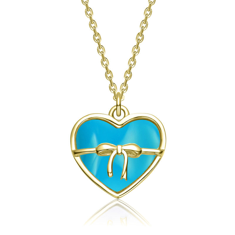 14K Gold Plated with Turquoise Enamel & Bow Heart Pendant Necklace