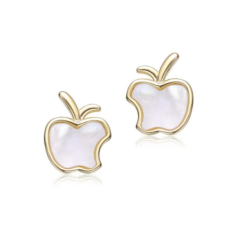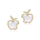 14K Gold Plated With White Mother Of Pearl Apple Design Studs Earrings For Kids