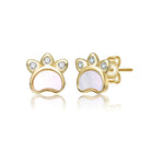 14K Gold Plated with White Mother Of Pearl & Clear Cubic Zirconia Paw Design Stud Earrings For Kids