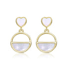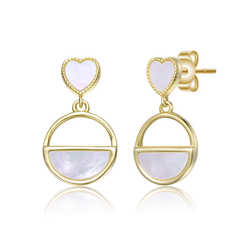 14K Gold Plated With White Mother of Pearl Heart & Circular Drop Earrings