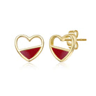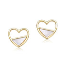 14K Gold Plated with White Mother Of Pearl Openwork Heart Stud Earrings