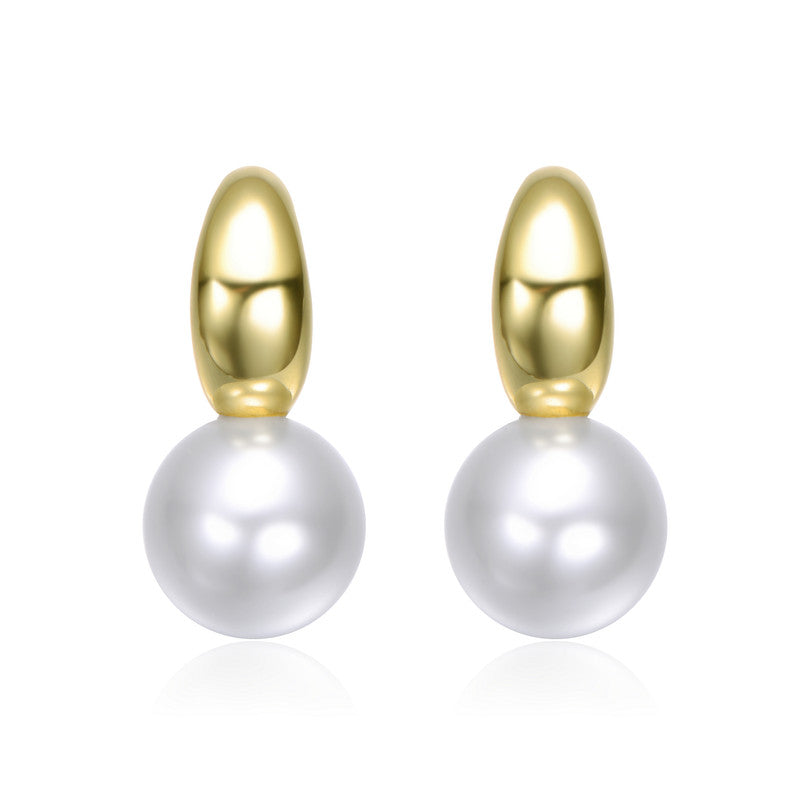 14K Gold Plated with White Pearl Huggie Design Drop Earrings