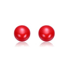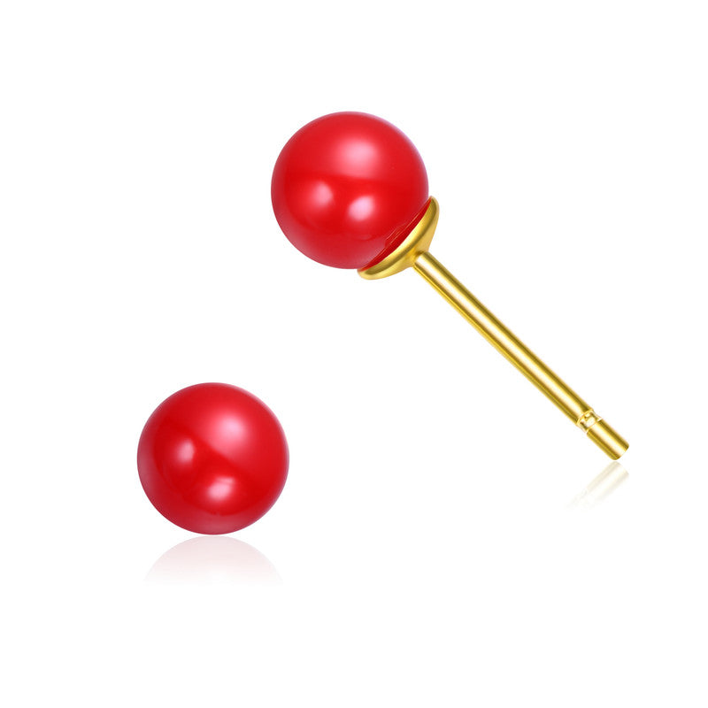 14k Yellow Gold Plated Stud Earrings with Red Enamel Round Pearl for Kids. Add a touch of vibrant elegance to your child's style with these 14k Yellow Gold Plated Stud Earrings. Featuring a secure pin clasp and a striking red enamel round pearl, these earrings are perfect for kids, adding a pop of color and charm to any outfit.